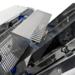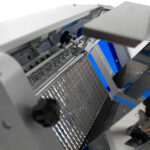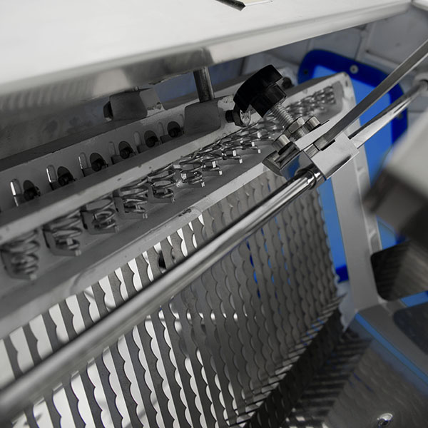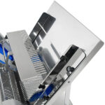 Хлеборезка выполнена из нержавеющей стали, что делает ее долговечной и простой в уходе. Прибор использует гравитационный способ нарезки: хлеб под тяжестью собственного веса проходит через рамку с вибрирующими ножами. В машине регулируется высота хлебного батона, а толщина ломтей остается стандартной – 10 мм.
