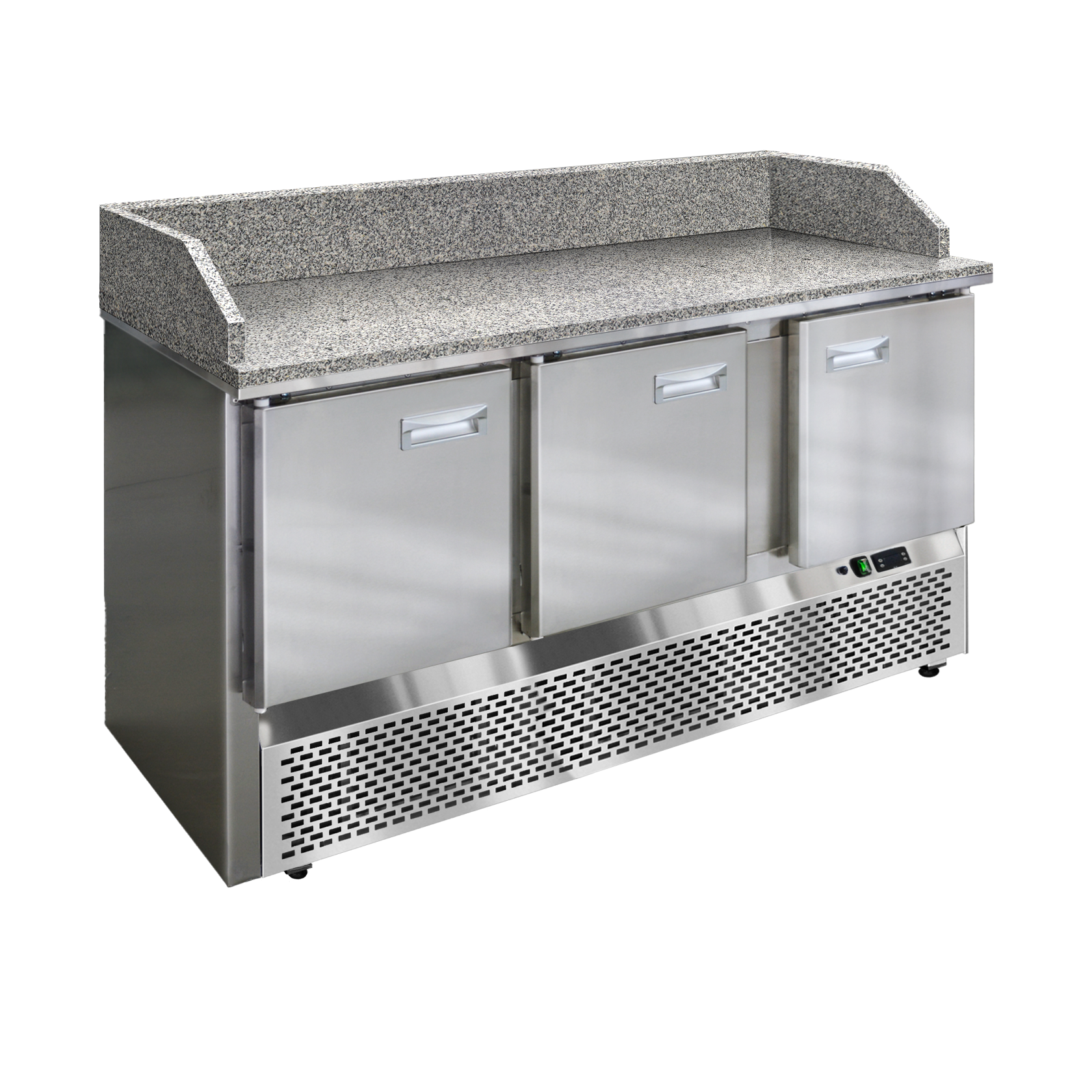 Среднетемпературный холодильный стол для пиццы предназначен для использования в технологическом процессе на предприятиях общественного питания. Основное назначение – хранение скоро портящихся полуфабрикатов из мяса, рыбы и других продуктов, применяемых для приготовления пиццы. Холодильный стол выполнен полностью из высококачественной нержавеющей стали. Варианты исполнения столешницы, гранит или нержавеющая сталь. Предусмотрена возможность регулировки ножек по высоте для удобства работы. Регуляция температурного режима производится с помощью электронного блока управления.