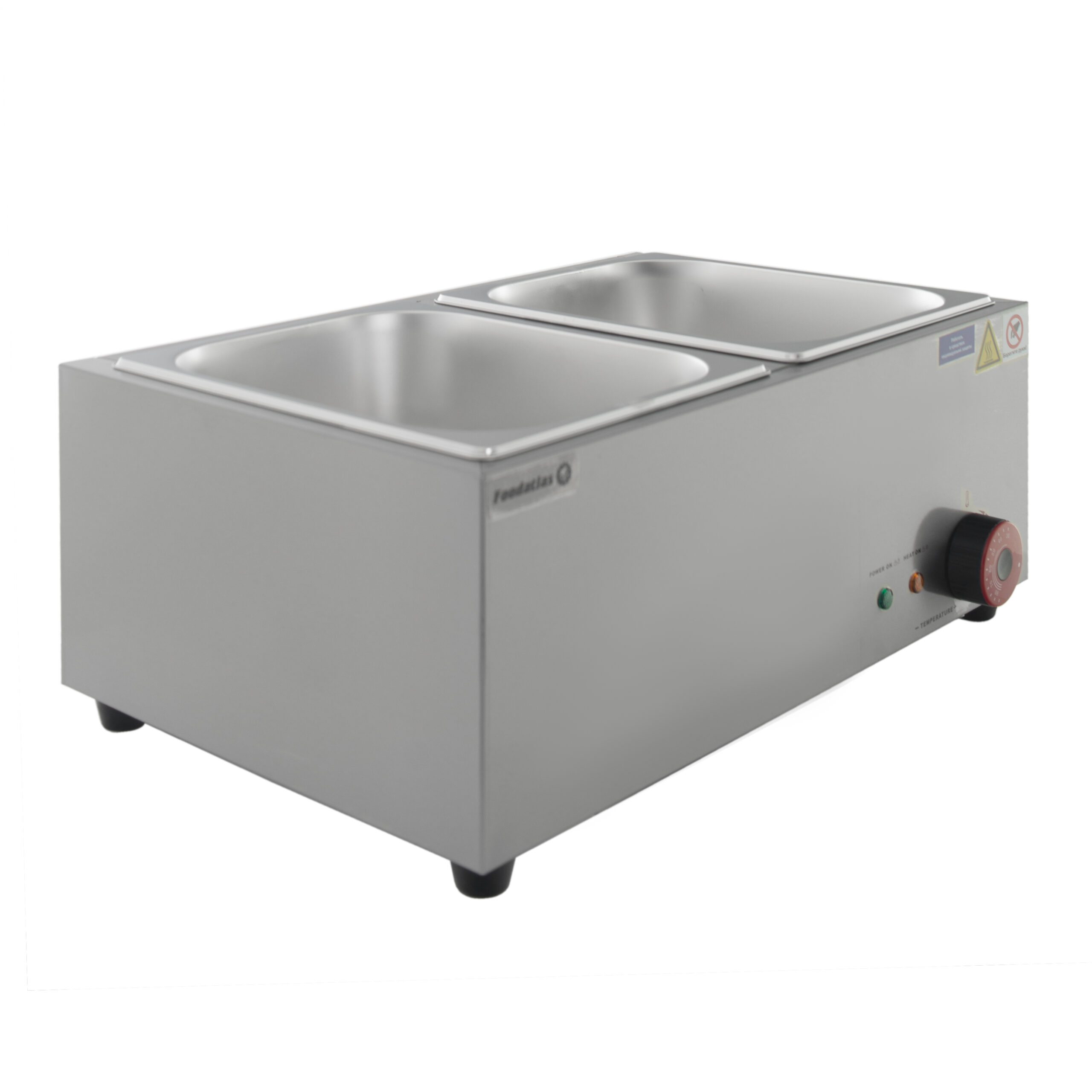 Предлагаемый вам мармит Foodatlas EH-2 имеет 2 бункера для первых и вторых блюд, соусов и прочих пищевых ингредиентов. По современным требованиям для изготовления мармитов применяется только коррозионностойкий металл. В данном случае речь идёт о нержавейке стали марки 460. Толщина металла составляет 0,8 мм, что обеспечивает исключительную механическую прочность и долговечность изделия.