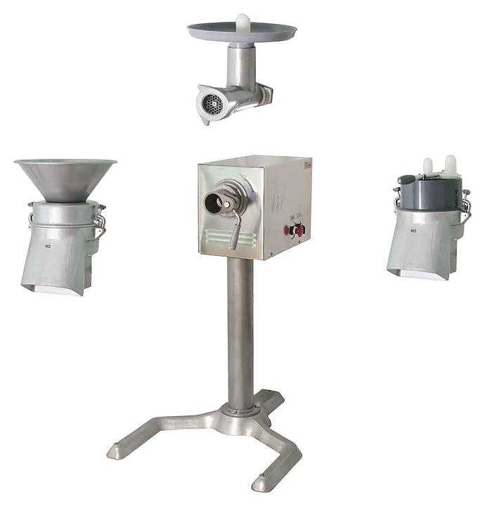 Приводной механизм комплектуется электродвигателем двухскоростным электродвигателем.В комплекте подставка.Производительность мясорубки 75кг/час.