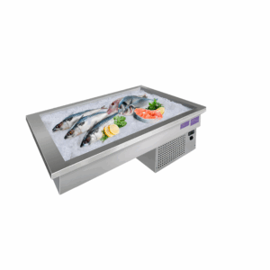 Витрины серий «VF»предназначены для охлаждения и демонстрации рыбы и морепродуктов на льду. Витрина изготавливается с принудительным охлаждением или без него. Изделие выполнено под наклоном, что позволяет покупателю видеть содержимое емкости. Двойные стенки позволяют поддерживать определенную температуру в емкости и замедляют процесс таяния льда, а вмонтированный кран для слива воды позволяет подсоединить ванну напрямую к системе водоотведения. Охлаждение нижней стенки ванны происходит за счет встроенной холодильной системы, позволяющей сохранить как можно дольше лед, который неизбежно тает, контактируя с внешней средой. Для увеличения рабочего объема внутри витрины и исключения попадания грязи и пыли на продукты, охлаждаемый объем может быть закрыт стеклами.
