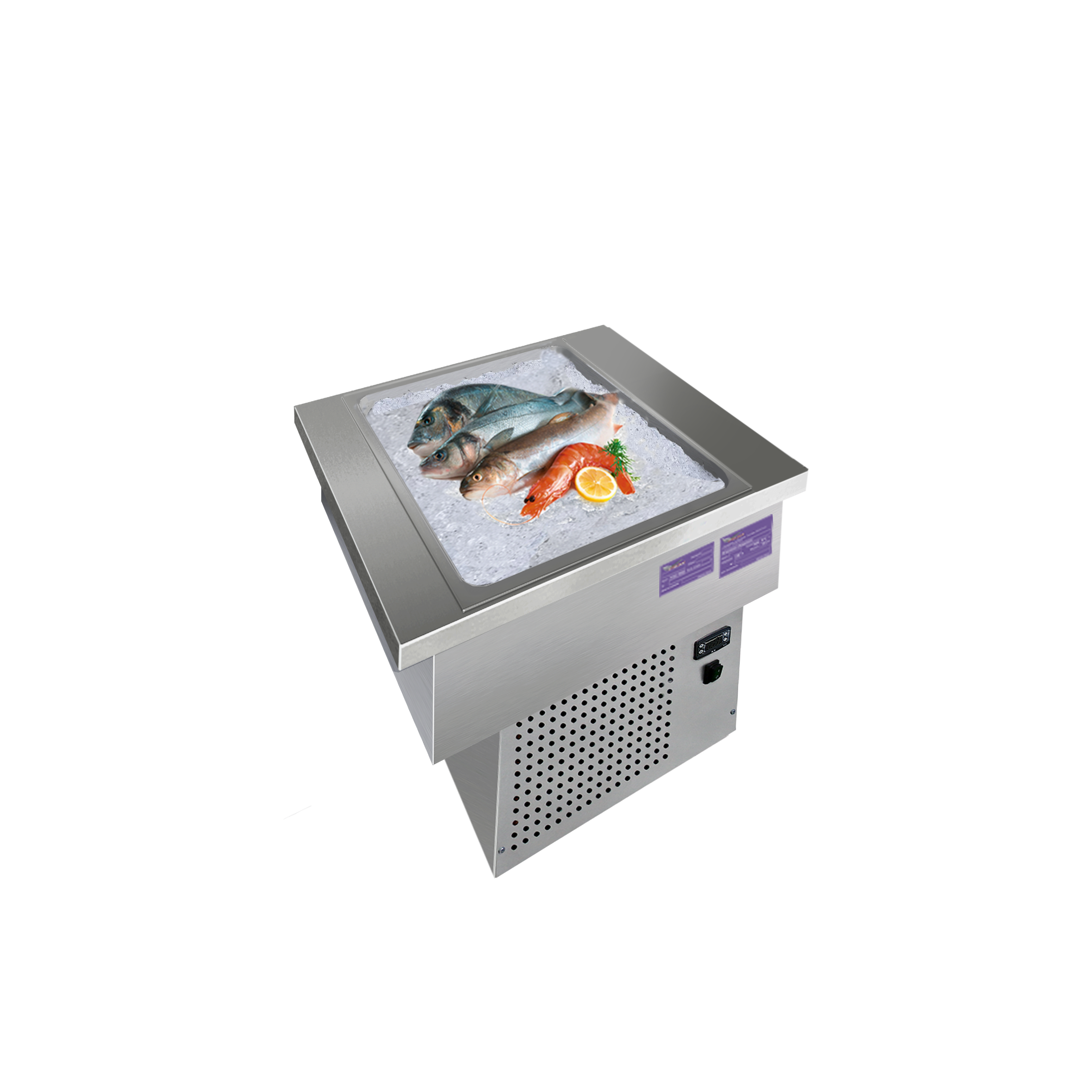 Встраиваемая холодильная ванна для льда выполнена из высококачественной пищевой нержавеющей стали. Снабжена самостоятельной холодильной установкой, имеет статическое охлаждение.