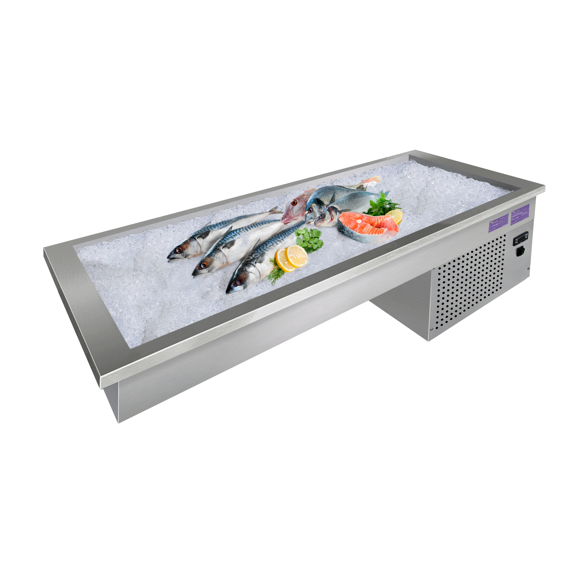 Встраиваемая холодильная ванна для льда выполнена из высококачественной пищевой нержавеющей стали. Снабжена самостоятельной холодильной установкой, имеет статическое охлаждение.